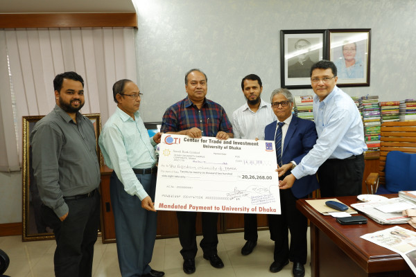 **Caption:** Contract signing between SSRC, Planning Division, Ministry of Planning, and CTI, University of Dhaka.